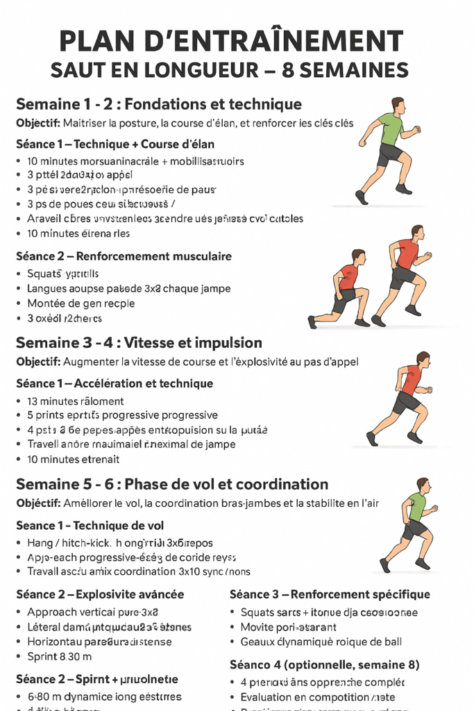 Objectif : Maîtriser la posture, la course d’élan, et renforcer les muscles clés.